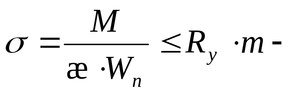 Ry – расчетное сопротивление стали на растяжение, сжатие и изгиб по пределу текучести.