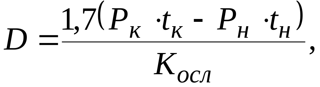 где Pн – уровень радиации в начале нахождения на зараженной территории, рад/ч.