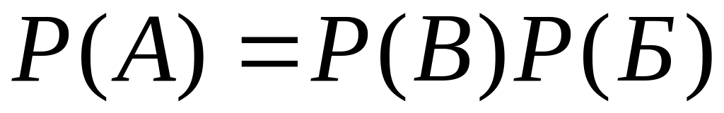 Вероятность совершения события А, равна произведению вероятностей Б и В: