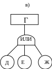 Вентиль "ИЛИ" указывает, что для того, чтобы произошло событие Г (рис. 1.2 б), должно произойти событие Д или Е или оба события вместе: