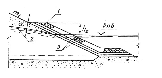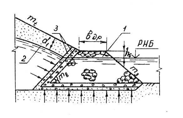 1 – камяний накид 2 – крива депресії 3 – зворотний фільтр