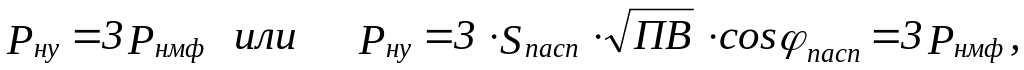 где Рну - условная трехфазная номинальная мощность, кВт; Рнмф - номинальная мощность максимально нагруженной фазы, кВт; Sпасп - паспортная мощность, кВА; ПВ - относительная продолжительность включения в долях единицы;