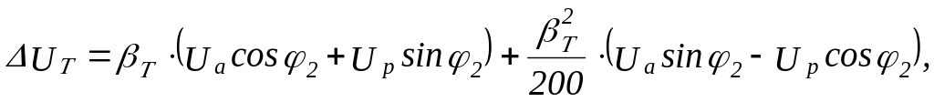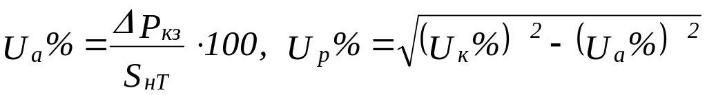 где Т - отношение фактической нагрузки одного трансформатора к его номинальной мощности в рассматриваемом режиме работы; Ua , Up - активная и реактивная составляющие напряжения КЗ, Uк% , равная