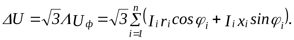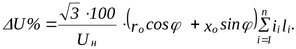 Если расчет на потери напряжения ведется не по токам участков линии (I1 , I2 , ... Ii), а по нагрузочным токам ЭП (I1 , I1 , .... Ii ), то будем иметь