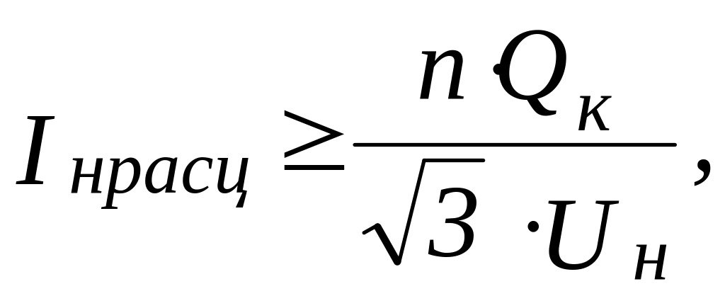где Qк – номинальная мощность одного конденсатора, кВАр; Uн – номинальное напряжение сети, кВ; n - общее количество конденсаторов в батарее (во всех фазах), штук.
