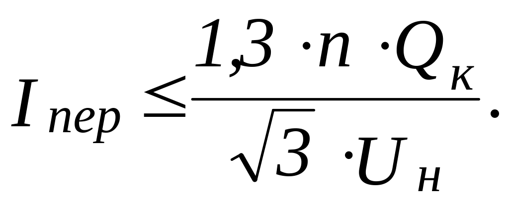 Уставка тока срабатывания расцепителя при перегрузке выбирается, исходя из 30%-ной перегрузочной способности конденсаторов