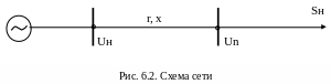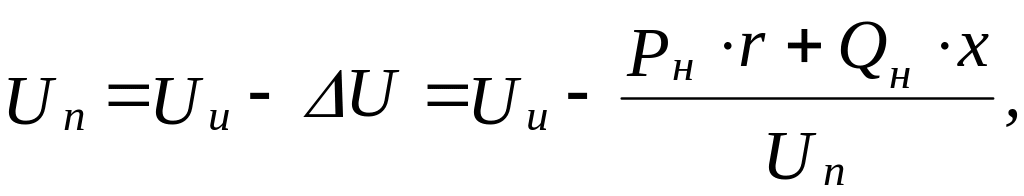 где U - потеря напряжения в сети при нагрузках Pн и Qн и напряжении Uп ; r и x - активное и реактивное сопротивления сети.