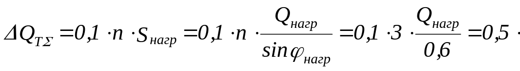 Qг=Qнаг + QТ 1,5 Qнагр =1,5 Pнагр tgнагр = 1,125 Pнагр .