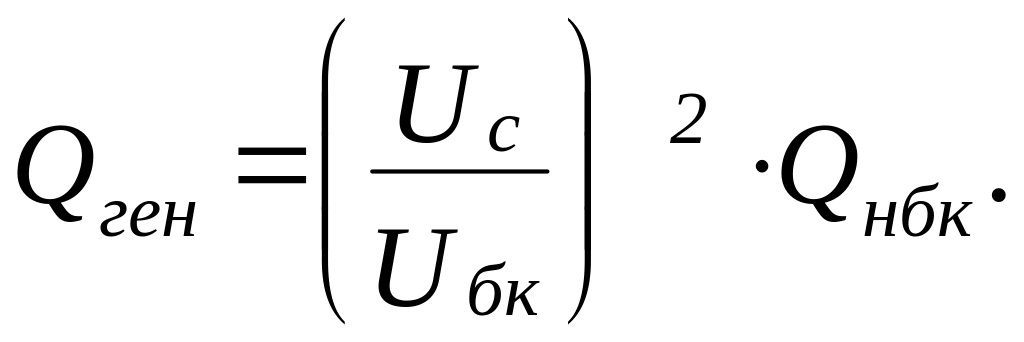 Батареи конденсаторов (БК) являются нерегулируемыми или ступенчато регулируемыми ИРМ. Батарею разделяют на секции, каждую из которых следует подключать через отдельный коммутационный аппарат. БК способны только генерировать Q. Генерация Qген батарей конденсаторов емкостью С, подключенной к электрической сети напряжением U, составляет