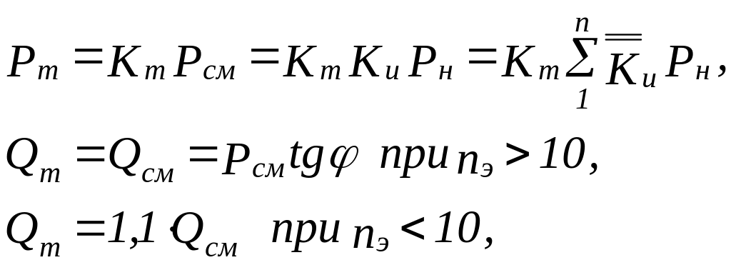 Расчетная активная Рm и реактивная Qm нагрузка групп ЭП с переменным графиком нагрузки (на всех ступенях питающих и распределительных сетей, включая трансформаторы, УР3) определяются из выражений: