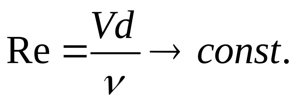 Связь сил инерции и сил вязкости при изучении подобных течений на модели и в натуре выражается числом Рейнольдса.