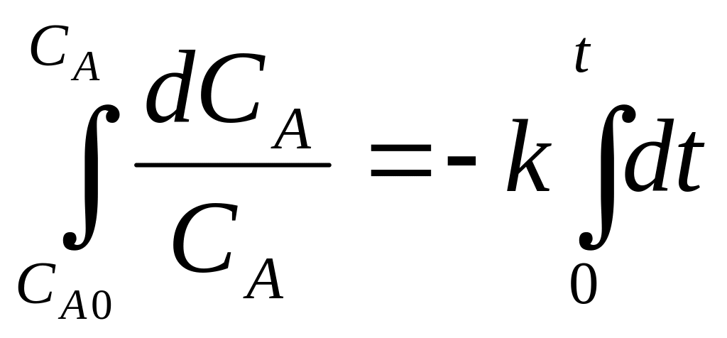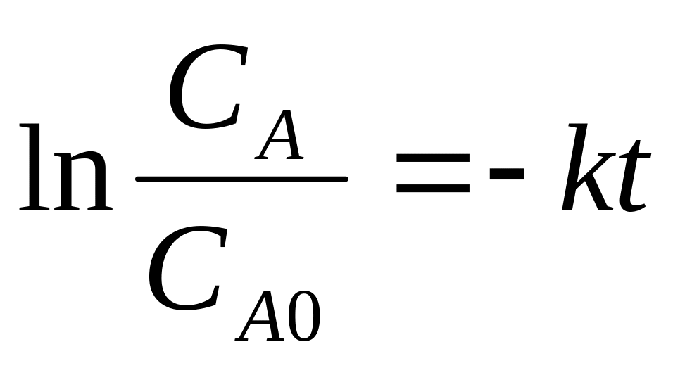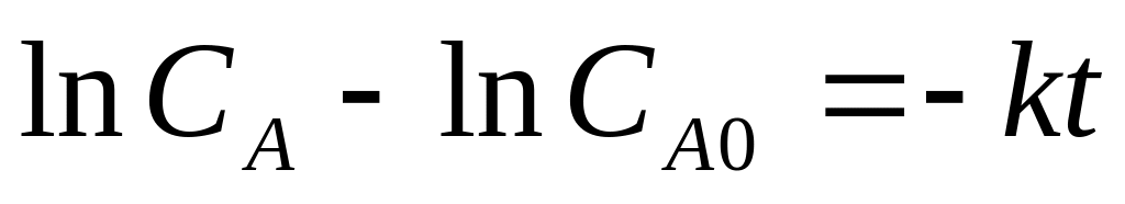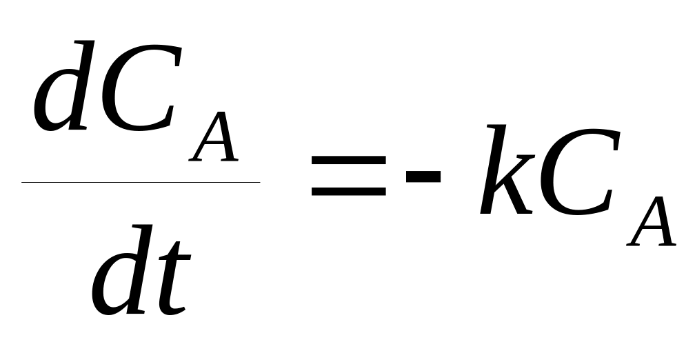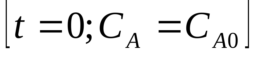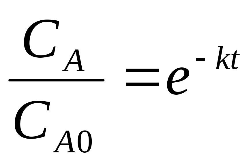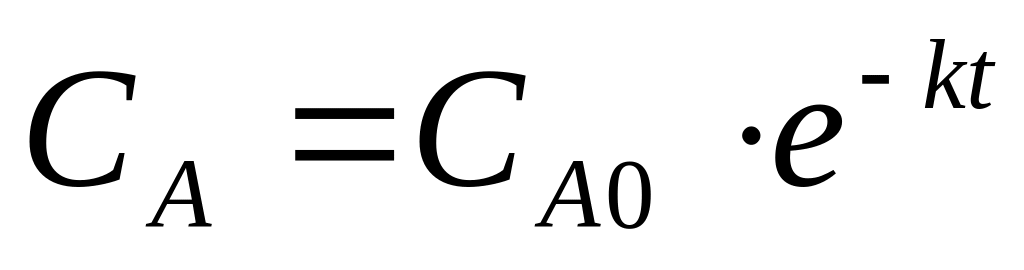 Проверим, не противоречит ли полученное решение условиям нашей задачи. При t=0, т.е. в момент начала химической реакции СA=CA0, поскольку экспонента обращается в единицу. Действительно, в начальный момент концентрация вещества А равна начальной. При t→∞ экспонента с отрицательным показателем стремится по величине к нулю. За бесконечно большое время вследствие химической реакции все вещество разлагается и образует В.