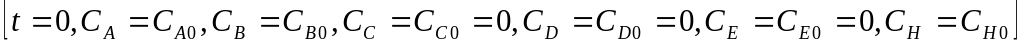 Рассмотрим поведение вещества С: в начальный момент времени СС = 0.