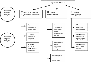 На размер удельных затрат — модель на рис. 1, кроме рассмотренных факторов, оказывают влияние цены на товары.