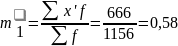 На основании данных табл. 14 рассчитываем момент 1-го порядка: итог по столбцу 5 делим на итог по столбцу 2.