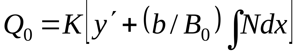 где Q0 — поперечная сила от распределенной нагрузки; х — координата горизонтального сечения рамы.