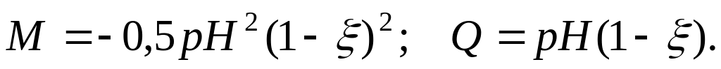 При равномерно распределённой нагрузке p(x)=p момент и поперечная сила