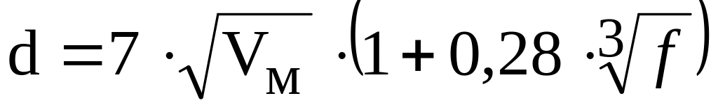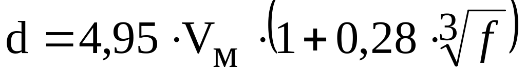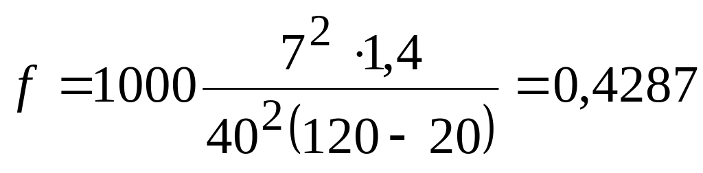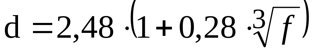 де d – безрозмірний коефіцієнт при f<100 встановлюється за формулами: