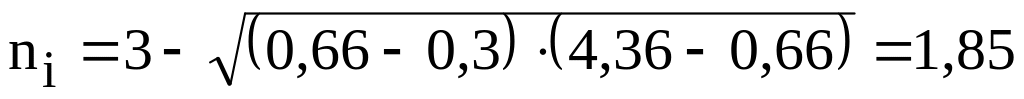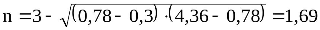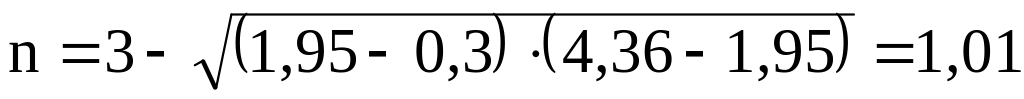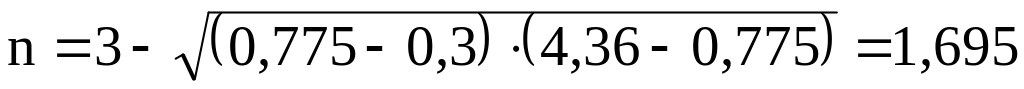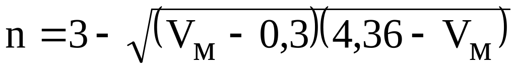 Значення безрозмірного коефіцієнта n визначається таким рівняннями в залежності від параметра Vм: