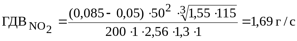 Задача 7. Визначити ГДВ NO2 і мінімальну висоту труби за умов: А=200; М=160 г/с; D=1,4 м; =1 м/с; =1; ΔТ=160 0С; =0,085 мг/м3; Сф=0,005 мг/м3.