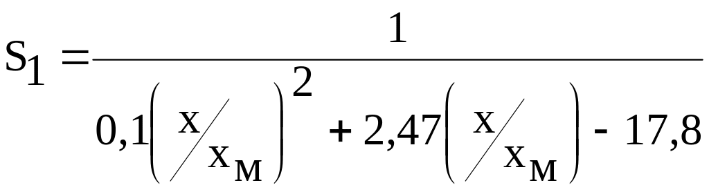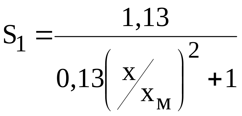 S1 – безрозмірна величина, що описує зміну концентрації вздовж осі факела, розраховується в залежності від відношення х/хм за виразами: