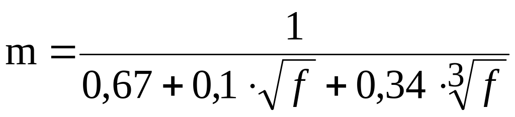 Значення безрозмірного коефіцієнта m визначається в залежності від параметра f за формулою: