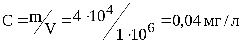 Задача 19. В результаті аварійного викиду хмара парів сірководню об’ємом 300 м3 та густиною 1,53910-3 г/мл повністю розчинилася у найближчому ставку об’ємом 510-6 м3.