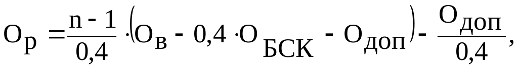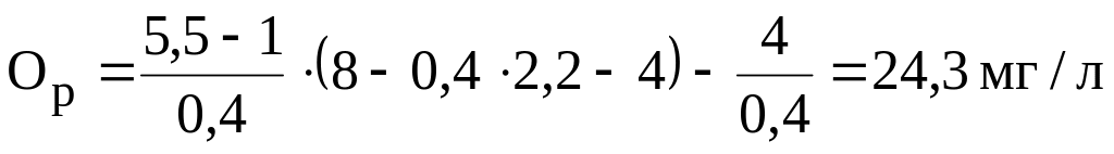 Завдання 7. Визначити необхідний ступінь очищення від забруднювачів, що визначають БСК з урахуванням розрахункової концентрації кисню в стічних водах. Температуру в річці прийняти рівною 20оС.