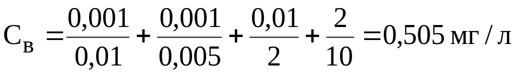 Завдання 10. Розрахувати концентрації забруднюючих речовин (ЗР) у максимально забрудненому струмені контрольного створу та зробити висновок щодо допустимості такої концентрації з точки зору санітарно-гігієнічних вимог.