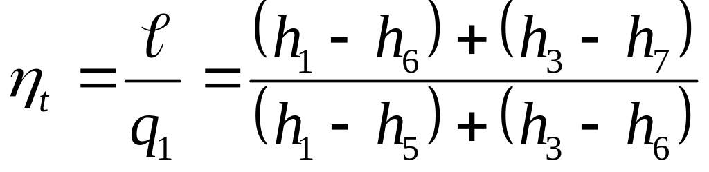 является уравнением теплового баланса подогревателя воды, из которого определяется доля пара, направляемого в отбор (). Затем рассчитываются подводимая (q1), отводимая (q2) теплота и термический КПД обратимого регенеративного цикла