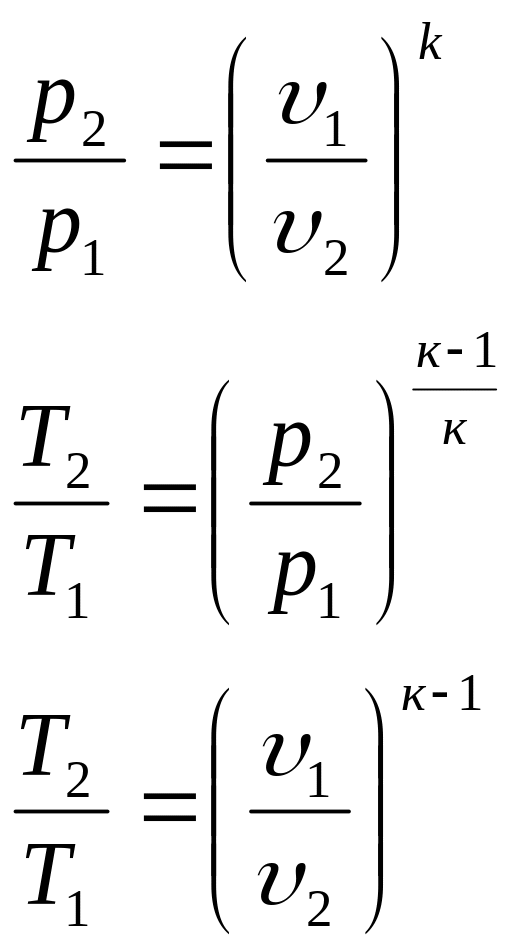 Адиабаты (s1, s2, s3) в р-υ-диаграмме – несимметричные гиперболы (рυк = сonst, к =ср / сυ>1), располагаются круче изотерм.