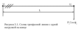 Потребитель получает питание по схеме, приведенной на рисунке 5.1. Значения максимальной мощности нагрузки в конце линии - Р2, коэффициента мощности - сosφ2, номинального напряжения в линии – Uн, длины линии L, продолжительности использования максимума нагрузки Tmax и температуры земли t земли приведены в таблице 1 в соответствии с вариантами.