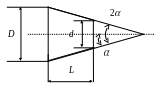 Под конусностью понимается отношение разности диаметров двух поперечних сечений конуса к расстоянию между ними (рис.6).