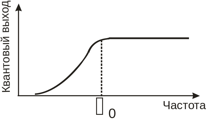 Квантовый выход люминесценции остаётся постоянным при частотах возбуждающего света >0 , а при <0 с уменьшением частоты быстро падает до нуля (рис. 3).