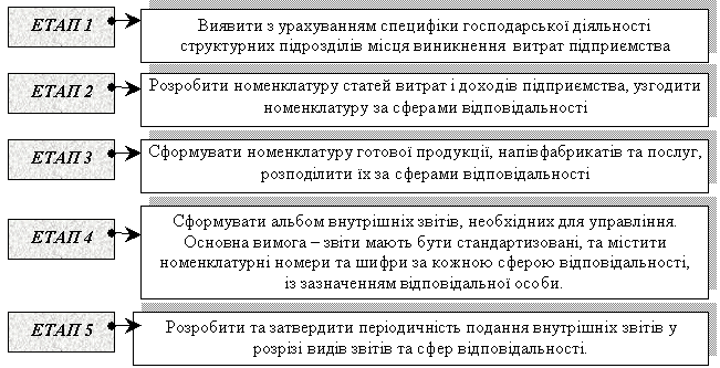 Рис. 3.2 Основні етапи побудови системи внутрішньої звітності в системі сфер відповідальності