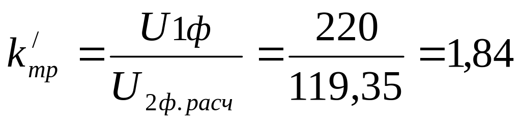 Рассчитываем действительный коэффициент трансформации выбранного трансформатора