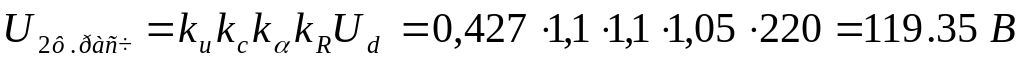 Расчетное значение напряжения U2ф.расч вторичной обмотки трансформатора, имеющего ТП с нагрузкой в режиме непрерывных токов, с учетом необходимого запаса на падение напряжения в силовой части, определяется формулой
