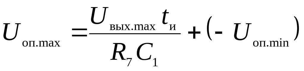 Принимая максимальное напряжения на выходе интегратора равным uоп.max , а начальное значение Uвых (0) = -uоп.min , получаем