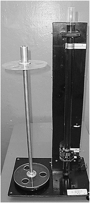 Прилад для визначення в'язкості рідини складається з високого скляного циліндра 1, що закріплений на стойці 2 (див. рис. 181.2), і наповнений досліджуваною рідиною. На стойці зроблені дві позначки: одна А (початок рівномірного руху кульки) на відстані 10... 12 см від верхнього рівня рідини, друга В (відмежовує дію дна посудини) на відстані 6...8 см від дна циліндра. Далі визначають час рівномірного падіння кульки в рідині між цими позначками.