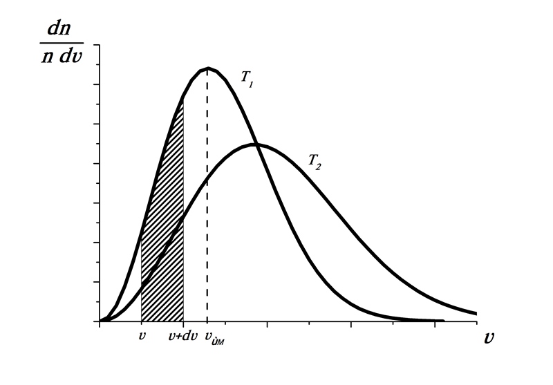 У довільному макроскопічному об’ємі молекули газу рухаються з різними швидкостями (від 0 до ∞ м/с). Оскільки молекули мають скінченні розміри і безперервно стикаються одна з одною (за нормальних умов молекула робить 109 зіткнень за 1 с), неможливо підрахувати число молекул, які мають задане значення швидкості. Але можна обчислити число молекул, швидкості яких лежать в інтервалі від до + d .