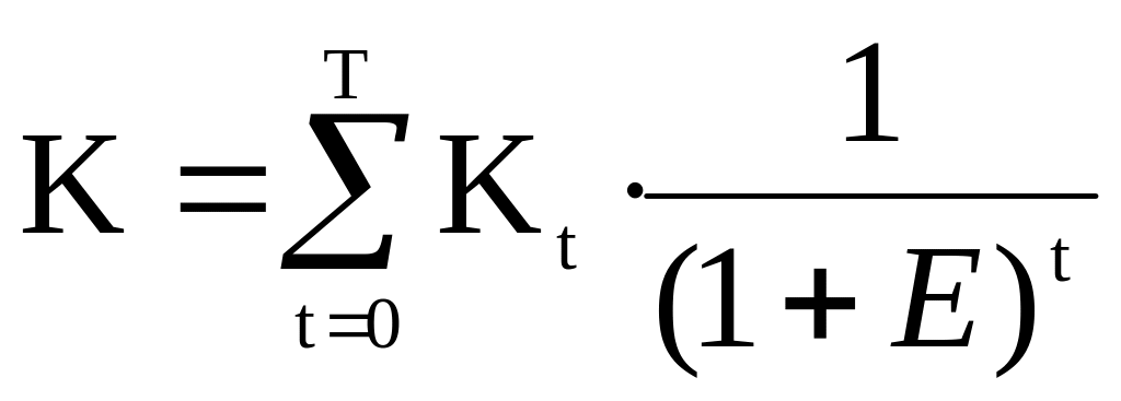 Общая величина полных капитальных затрат по объему в целом за весь период осуществления проекта может быть определен путем суммирования капитальных затрат соответствующих лет, приведенных к одному из годов в пределах срока строительства, для чего используется формула: