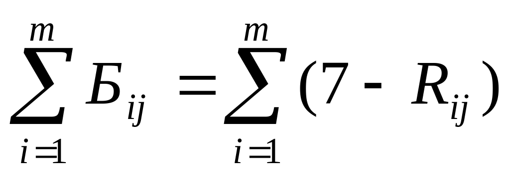 Шаг 6. Учитывая обратную связь между оценкой в рангах и баллах, для облегчения дальнейших расчетов перейти в шкалу баллов. В этом случае оценка в баллах