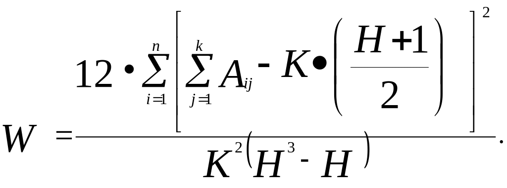 С – сумма квадратов отклонений сумм рангов по каждому объекту от средней суммы рангов по всем объектам и экспертам, то есть: