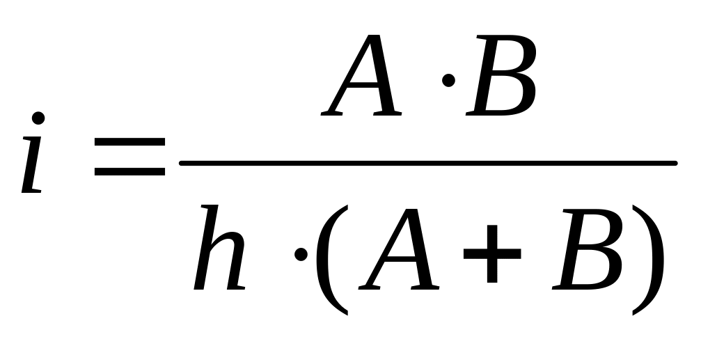 де А, В, h – довжина, ширина і розрахункова висота (висота підвісу світильника над робочою поверхнею) приміщення, м.