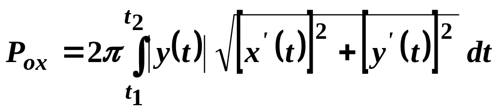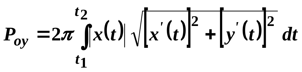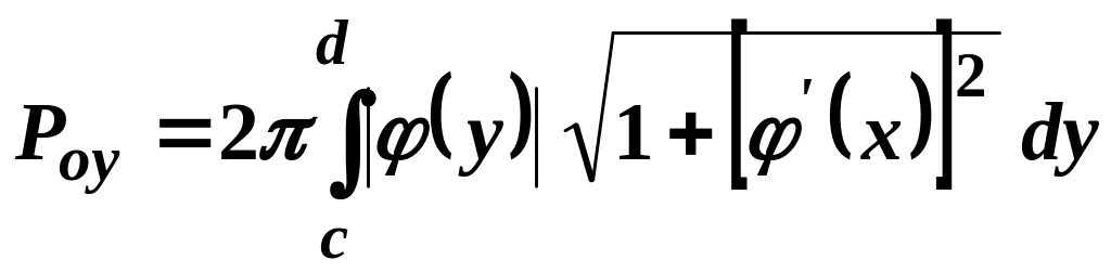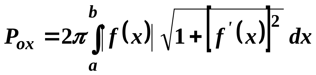 Площа поверхні, утвореної обертанням навколо осі дуги гладкої кривої, заданої функцією , , обчислюється за формулою