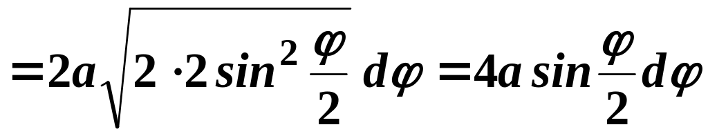 Довжину дуги обчислимо за формулою (3.10). Для цього знайдемо диференціал дуги .