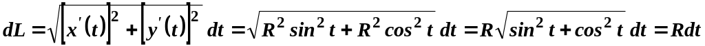 Користуючись симетрією, обчислимо довжину дуги, що розташована у першій чверті. Вона становитиме чверть від всієї довжини дуги.