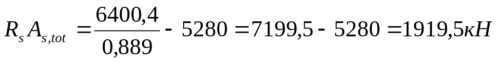 Поскольку полученное значение RsAs,tot близко к принятому в первом приближении, суммарную площадь сечения арматуры принимаем равной