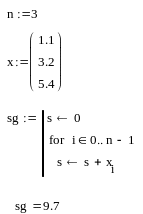 Алгоритм вычисления суммы значений элементов вектора имеет циклическую структуру и может быть реализован с использованием оператора for.