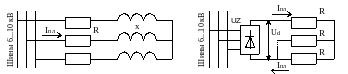 Рис.2.10. Принципиальные схемы плавки гололеда переменным (а) и выпрямленным (б) током